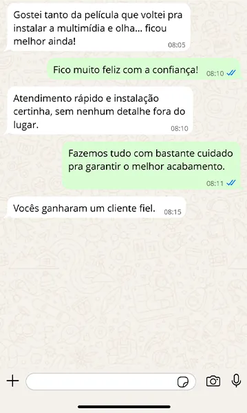 Contamos com espaço exclusivo e climatizado para garantir uma aplicação impecável, sem bolhas, manchas ou imperfeições